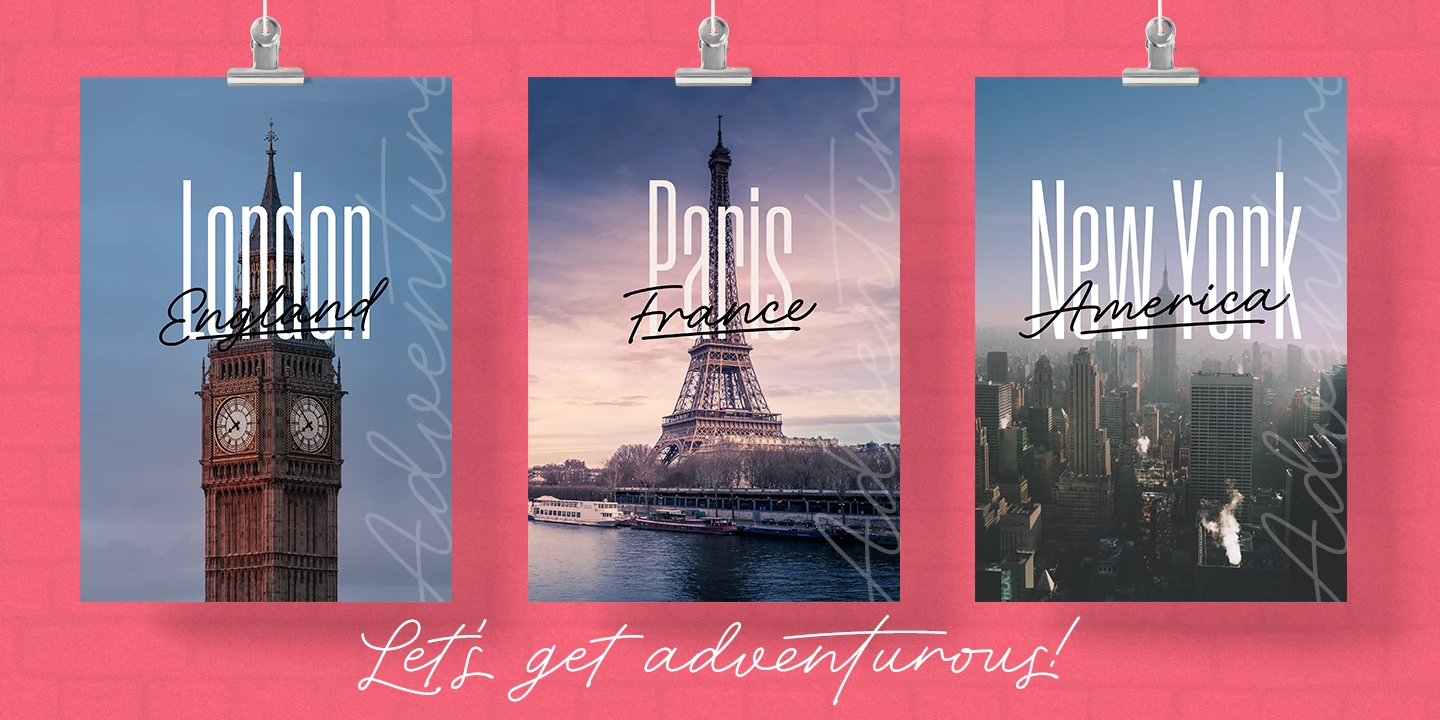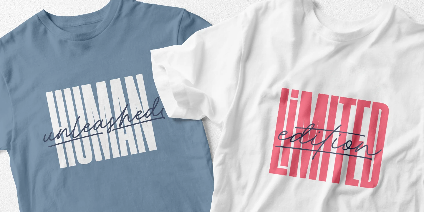 Please welcome a new contemporary font family: an adventurous pair of ultra condensed sans serif and a monoline signature script. Both fonts are charged with ligatures and swashes and will make your design journey even more enjoyable! The ultra condensed sans serif comes in three weights while the script font - in two. You can mix-n-match all five to enhance your design and to invigorate your ideas. The font family is perfect for all kind of designs: quotes, t-shirt, branding, social media, magazines, cards, packaging etc. All fonts are fully unicode mapped and can be used in any software - either using OpenType panel of the application in use or your OS default Font management software - Character Map or FontBook - by copy-pasting the glyphs you need.