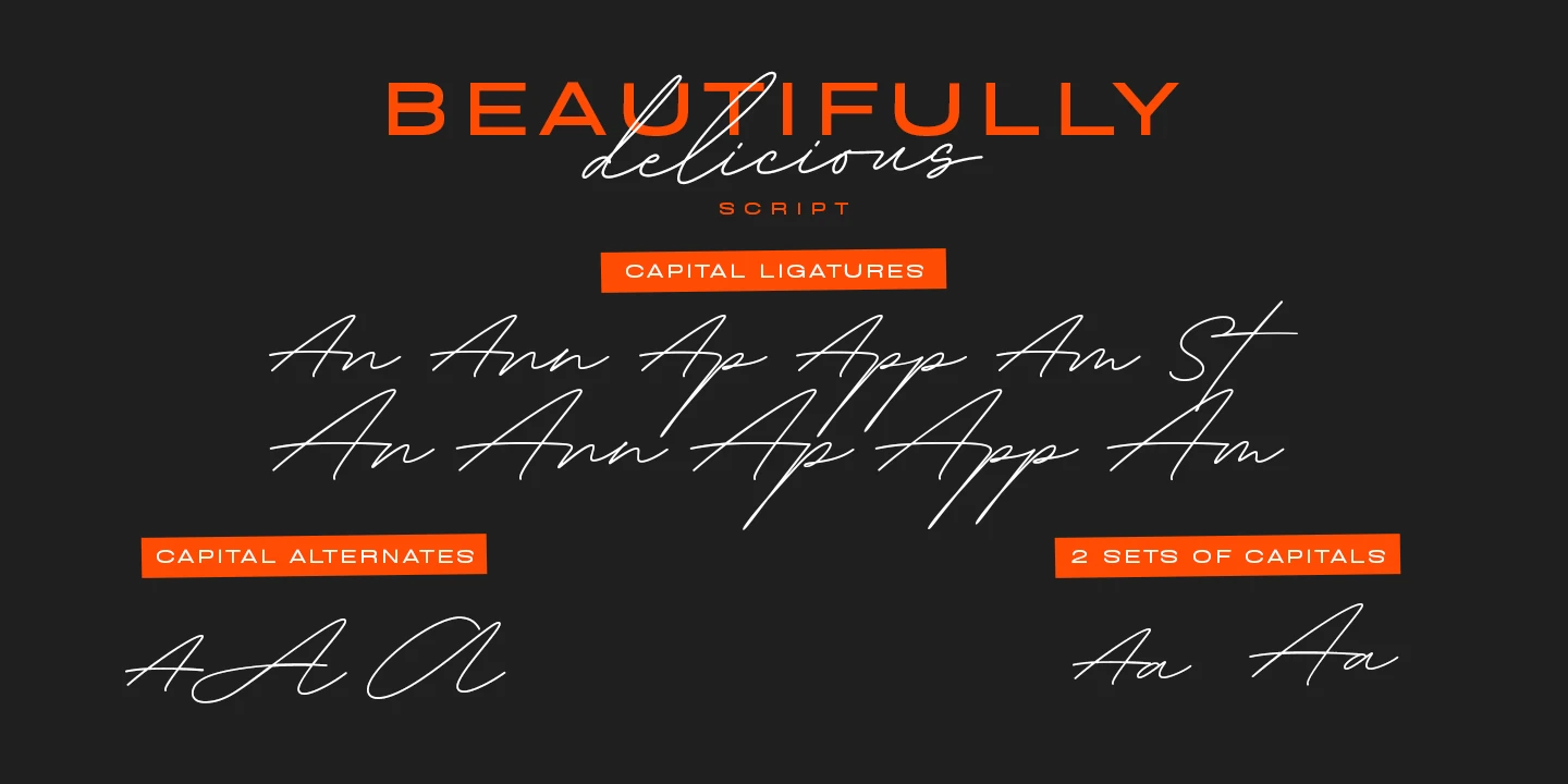 | Beautifully Delicious Script Family Styles included • Regular • Bold $44.99 |