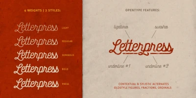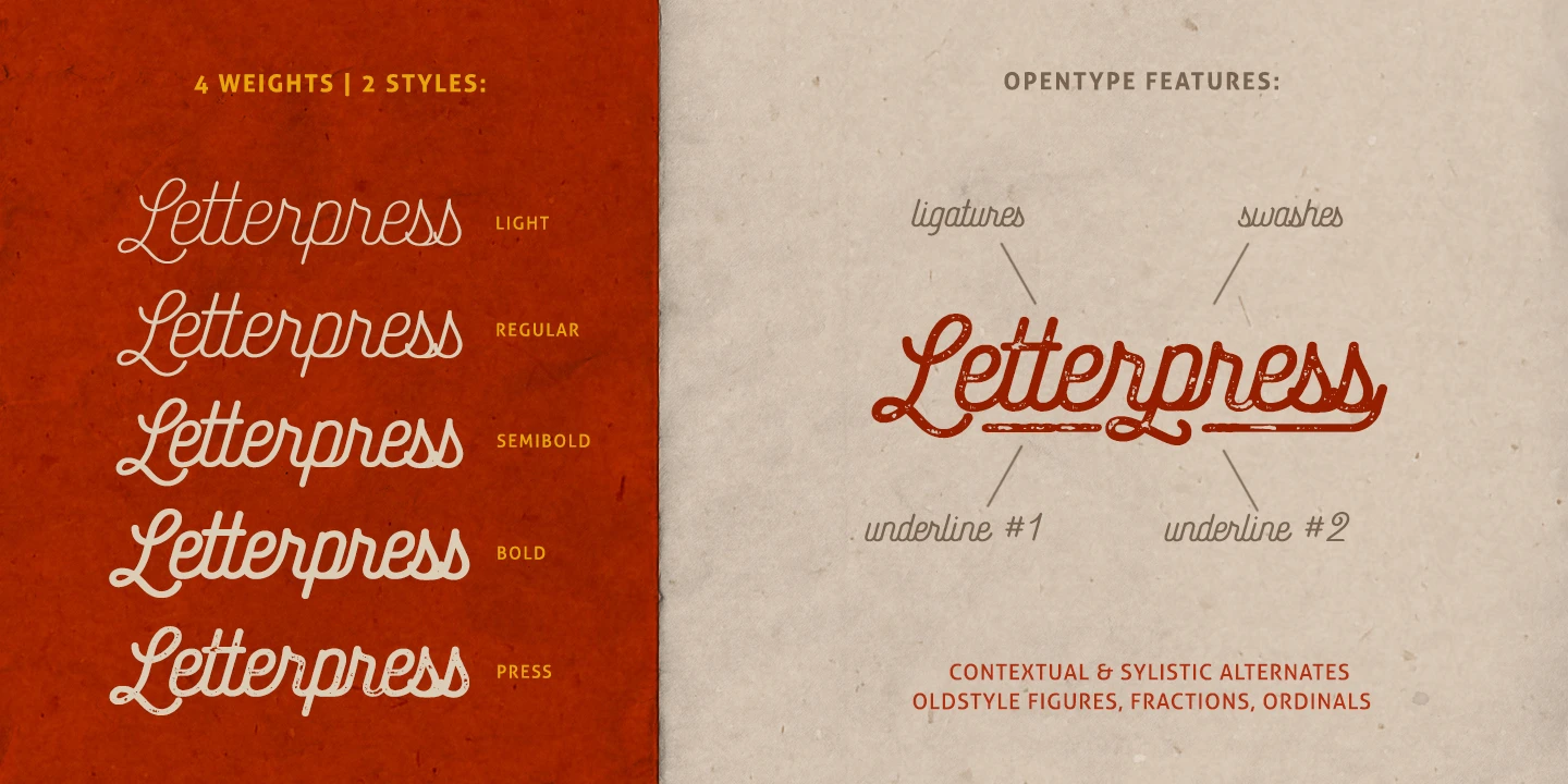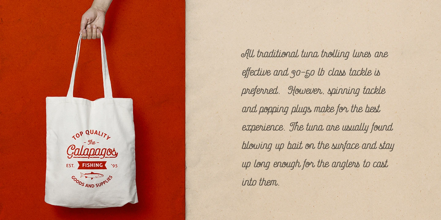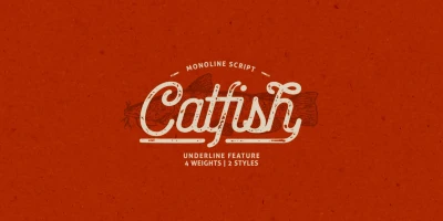 Catfish is a monolinear geometric script with a touch of classic vintage. It can be used for various purposes such as logos, badges, t-shirt design, signage, labels, book cover design, and posters. Catfish comes in 5 weights — Light, Regular, Semi Bold, Bold — and a textured version, Catfish Press Regular.