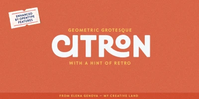 Citron Grotesque is a friendly geometric sans serif bursting with hidden typographic potential. Initially inspired by Edward Johnston’s Railway Type and other early 20th-century designs, it evolved into a softer, more versatile, feature-rich family filled with countless alternates perfect for developing charismatic and unique branding, advertising, publishing, packaging, and user interface solutions. Citron is available in 5 weights — Thin, Light, Regular, Bold, and Black — with corresponding italics.